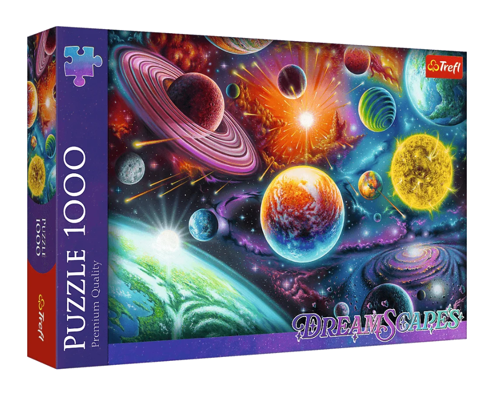 Explora los misterios del universo con este rompecabezas de 1000 piezas de Trefl, que presenta una ilustración fantástica del sistema solar en la serie DreamScapes. Ideal para quienes aman la astronomía, el arte cósmico y los desafíos visuales, este modelo es perfecto para regalar o compartir en familia.
