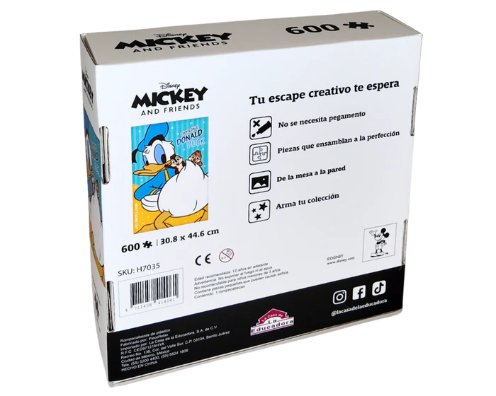 Revive la diversión y las travesuras clásicas de Donald junto a Chip y Dale con este rompecabezas de 600 piezas de plástico resistente, impresas en alta definición para capturar cada detalle de esta escena llena de humor y energía.