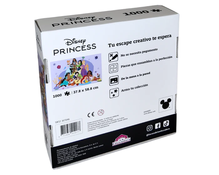 Descubre la magia de las princesas más queridas de Disney con este rompecabezas de 1000 piezas de plástico resistente, impresas en alta definición para capturar cada detalle de una escena llena de encanto, color y fantasía.