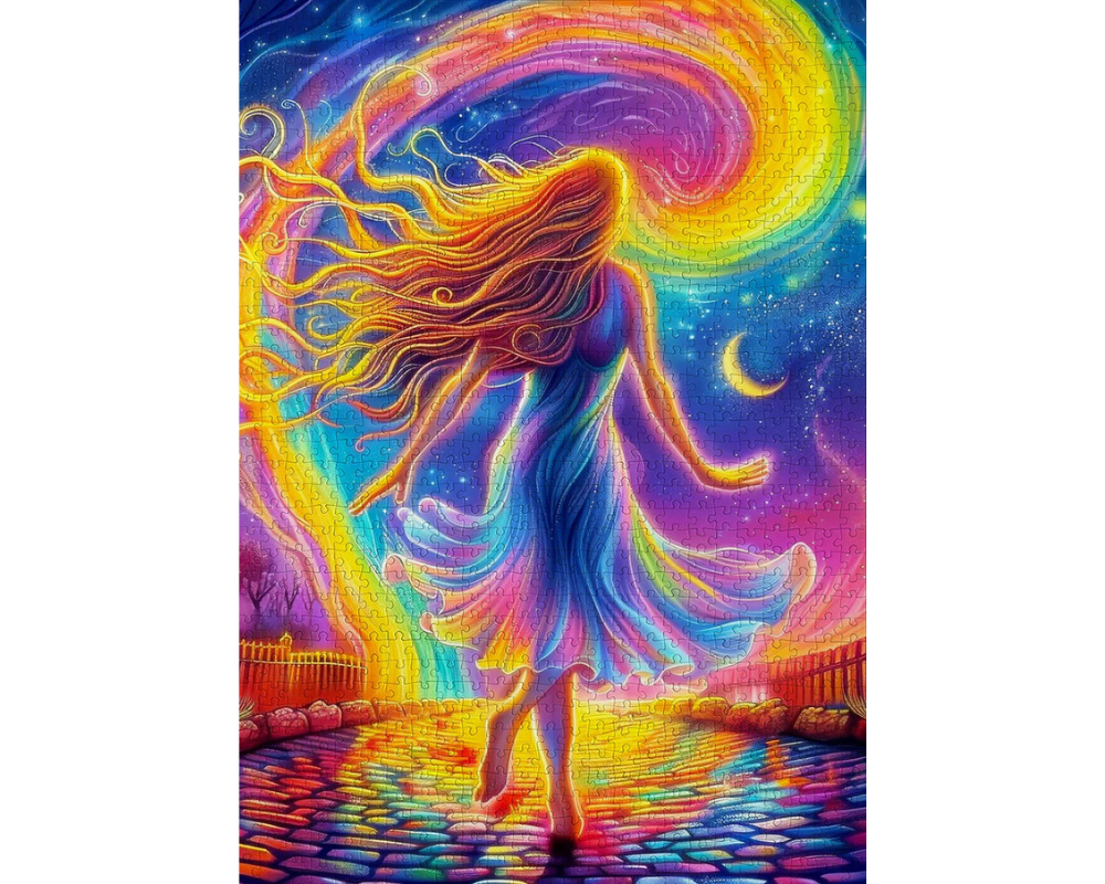 Diseño evocador: Camino a Mis Colores presenta una composición artística que mezcla trazos fluidos, contrastes suaves y una paleta vibrante que invita a la contemplación. Es más que un rompecabezas: es una metáfora visual del autodescubrimiento.