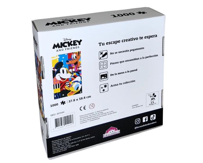 Disfruta la energía y amistad de Mickey, Donald y Pluto con este rompecabezas de 1000 piezas de plástico resistente, impresas en alta definición para capturar cada detalle de esta escena clásica y entrañable del universo Disney.