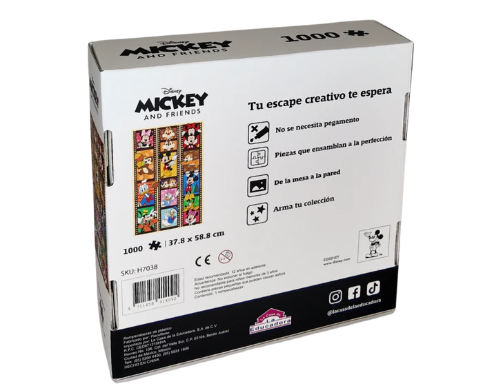 Celebra la amistad y diversión de Mickey junto a sus amigos con este rompecabezas de 1000 piezas de plástico resistente, impresas en alta definición para capturar cada detalle de una escena llena de color, alegría y complicidad.