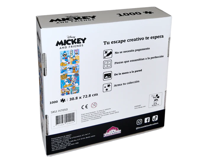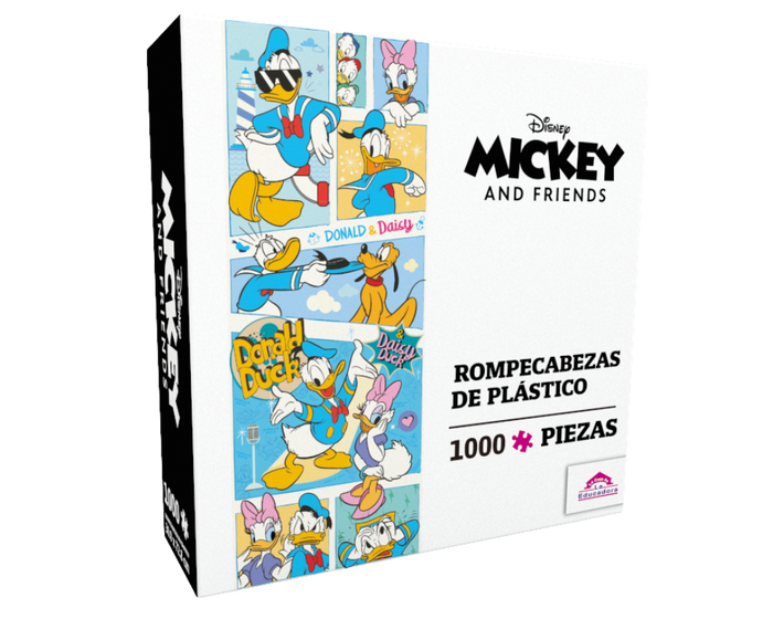 Disfruta la ternura y complicidad de Donald y Daisy en un formato panorámico con este rompecabezas de 1000 piezas de plástico resistente, impresas en alta definición para capturar cada detalle de una escena amplia y vibrante.