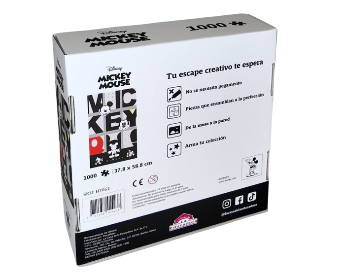 Celebra el estilo icónico de Mickey con este rompecabezas tipo póster de 1000 piezas de plástico resistente, impresas en alta definición para capturar cada detalle de un diseño vibrante y lleno de personalidad.